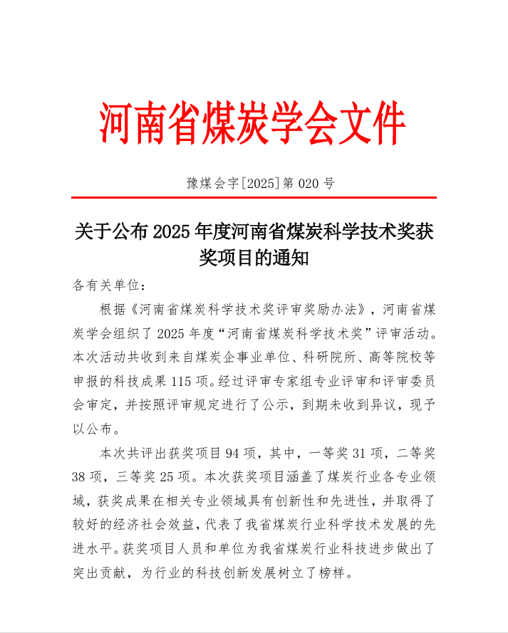 本次獲獎項目涵蓋煤炭行業各專業領域,獲獎成果在各自領域具有創新性與引領性,代表了河南省煤炭行業科技創新發展的前沿高度。