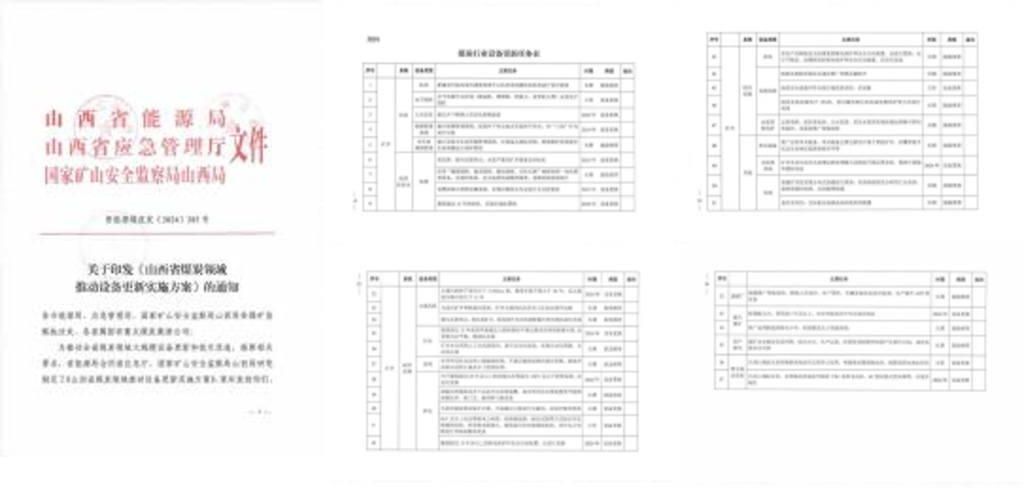 日前 , 山西省能源局會同省應急廳、 國家礦山安全監察局山西局研究制定了《山 西省煤炭領域推動設備更新實施方案》 (以下簡稱《方案》 ) , 提出依法依規淘汰 一批落后設備、 因地制宜更新一批老舊設備、 適度超前推廣一批先進設備 , 全方位 推動煤礦及選煤廠設備向高端、 智能、 綠色、 安全方向更新改造。